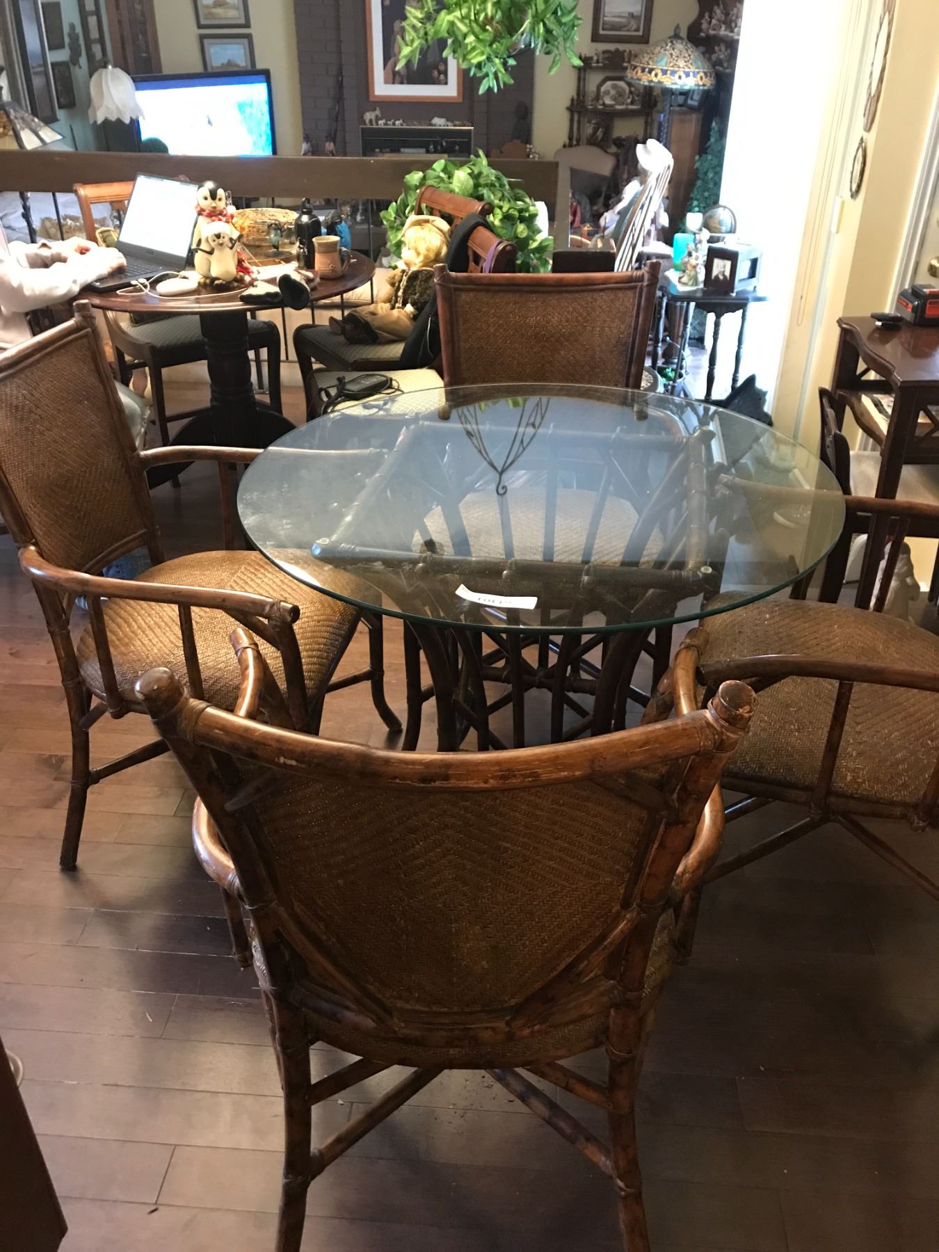 Outdoor Round Wicker Table With Glass Top, 4 Chairs